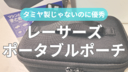 ミニ四駆の持ち運び用として話題になっているのが、アクラスの「レーサーズ・ポータブルポーチ」です。タミヤ製ではないのに、考えて作られたサイズ感。マシン1台とちょっとした工具や電池の持ち運びには十分。EVA素材による軽さと丈夫さもポイントになっています。