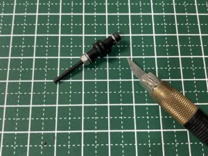ベアリング用スペーサーの大きさを目安に削っていき、デジタルノギスなどで測りながら最終的に5.1~5.3mm程度に仕上げていくのがポイントになります。